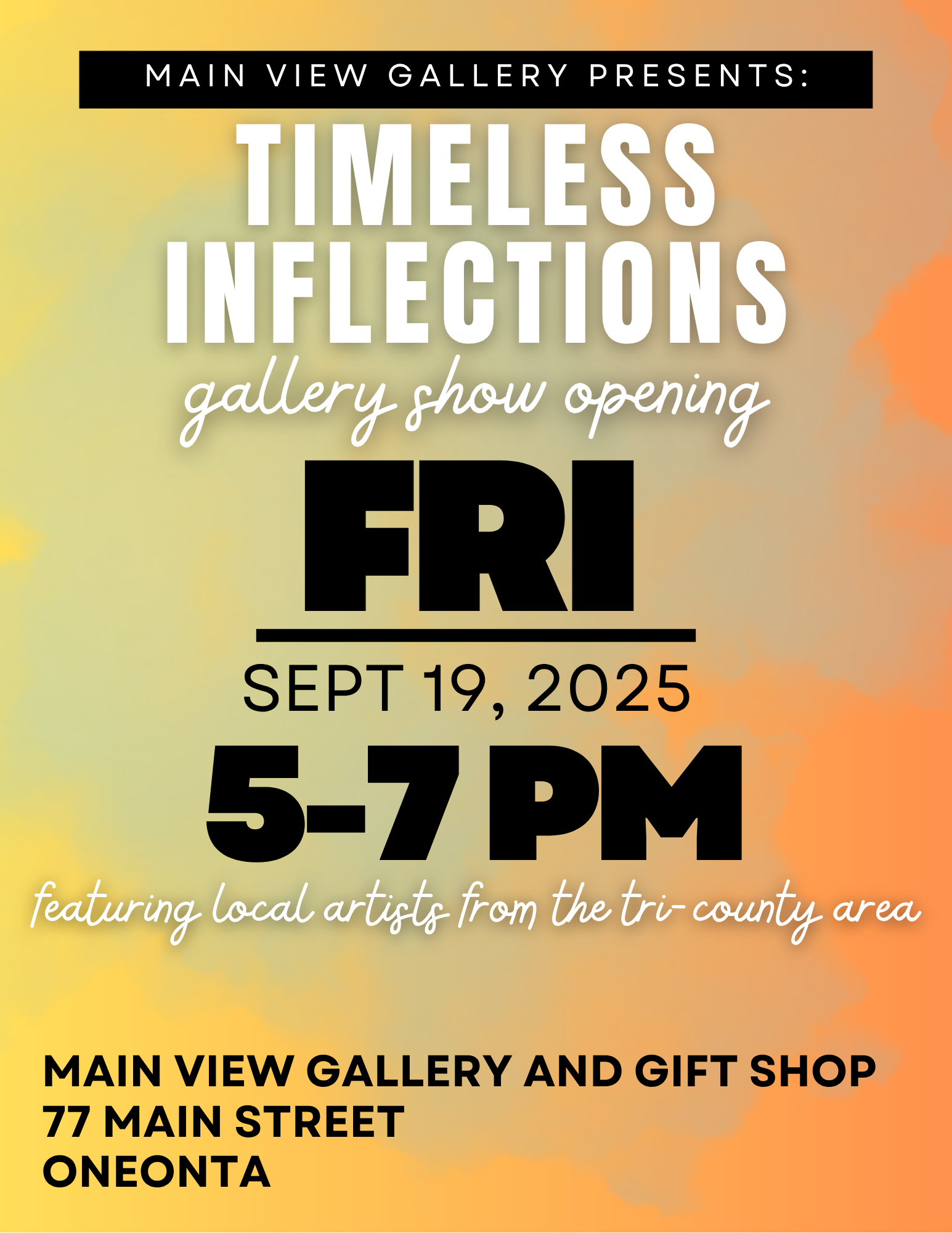 Our Fall Show Opening is Friday, September 19, 2025 from 5-7pm at Main View Gallery and Gift Shop at 77 Main Street, Oneonta